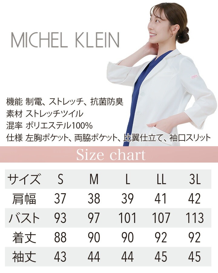 ミッシェルクラン ドクターコート 白衣 MK-0012 レディース 医師 医療用 抗菌防臭 ストレッチ 静電 女性用 薬剤師