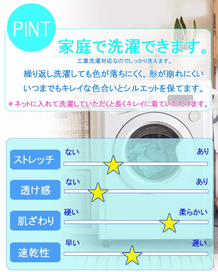 ●機能:透け防止、制電、ストレッチ、制菌、工業洗濯対応