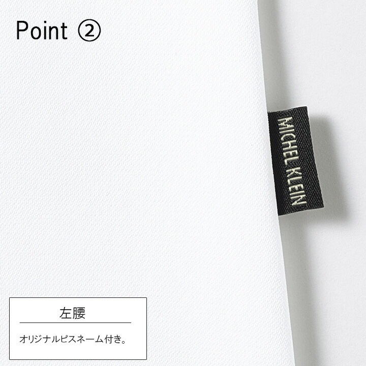 シェイプされたウエストラインや比翼ボタンなど、ミッシェルクランならではのエスプリがきいた一枚が完成