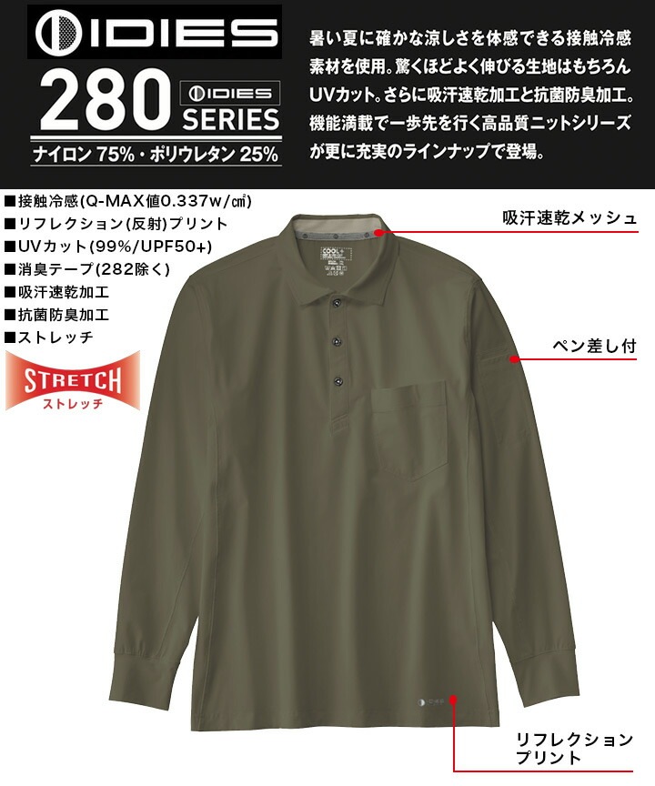 【即日発送】ポロシャツ 長袖 メンズ 285【春夏】 接触冷感 反射プリント UVカット 消臭テープ 吸汗速乾加工 抗菌防臭加工 ストレッチ 280シリーズ メンズ スポーツ 作業服 作業着 ホシ服装 HOSHI