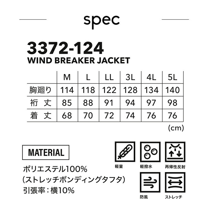 寅壱 ウインドブレーカージャケット 3372-124 軽量 撥水 秋冬 作業服 作業着 防寒着 防寒服 ブルゾン ジャンパー ジャケット 登山 釣り キャンプ