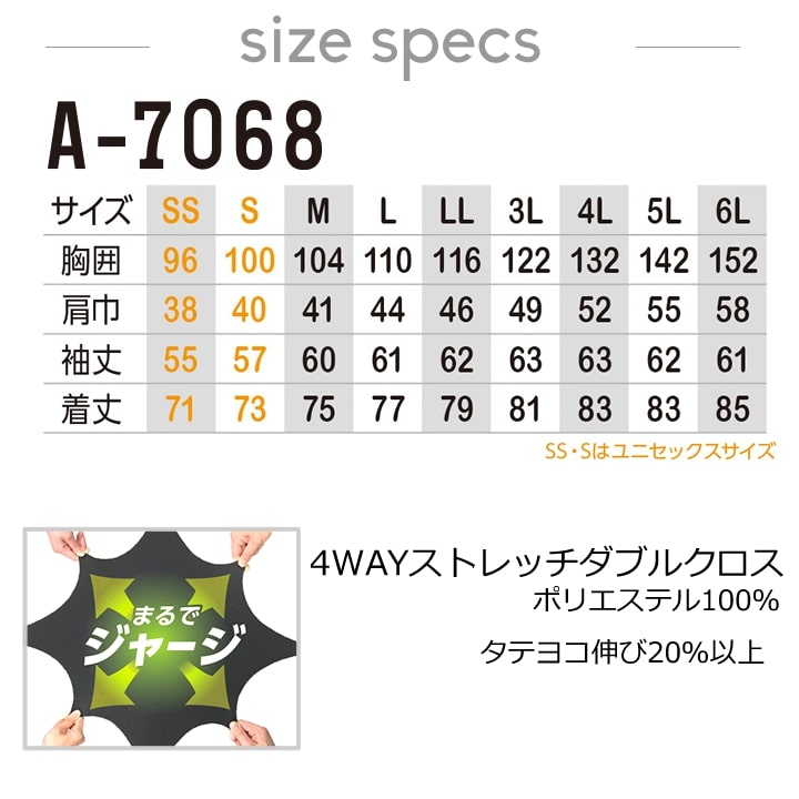 | A-7160 ストレッチジャケット | A-7068 ストレッチ長袖シャツ |