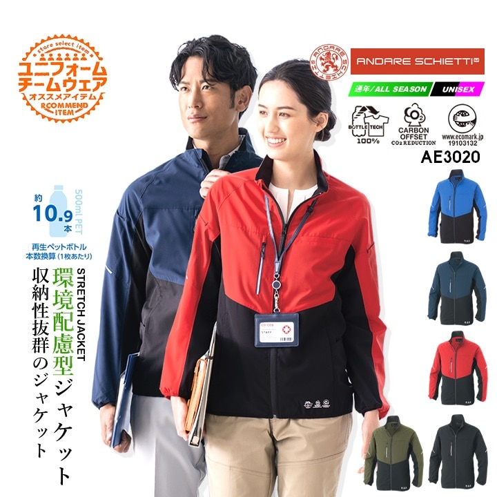 防寒ジャケット ストレッチウォームジャケット エコボトルテック AE-3220 アウター ジャケット カラーブルゾン ストレッチ 多収納 反射材 再生PET素材 カーボンオフセット エコマーク メンズ レディース ユニフォーム イベント 秋冬 作業着 CO-COS