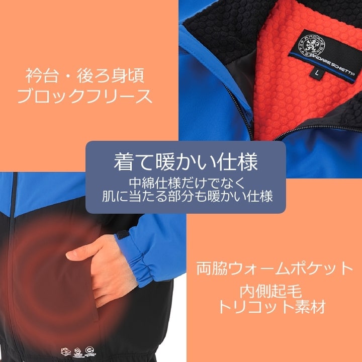 ●背中・衿部分に保温性の高いブロックフリースを使用
