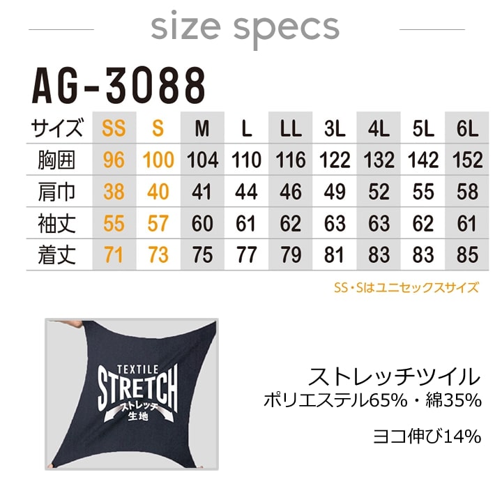 | AG-3180 ストレッチジャケット | AG-3088 ストレッチ長袖シャツ |