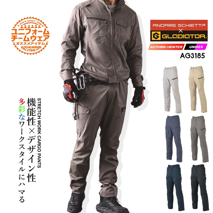 | AG-3183 ストレッチワークパンツ | AG-3185 ストレッチカーゴパンツ |