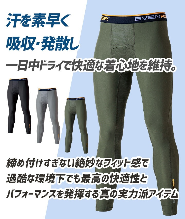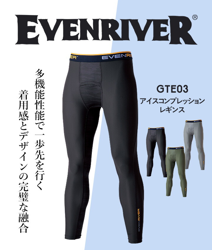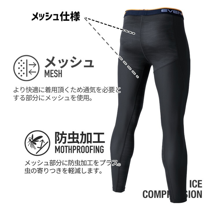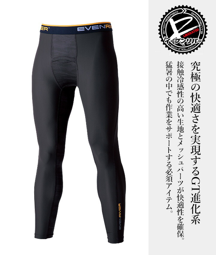 【即日発送】イーブンリバー 冷感 ひんやり ロングタイツ コンプレション レギンス EVENRIVER GTE-03 インナー タイツ 冷感素材 吸汗速乾 防虫加工 抗菌防臭 紫外線対策 コンプレッション ナイロン メッシュ ハイブリッド 春夏 作業着 作業服 ワークウェア