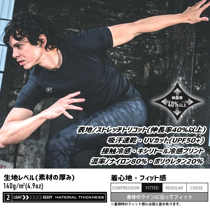 接触冷感効果を高めたバートル4097インナーシリーズ。 暑い季節でも快適にヒンヤリを体感できる半袖コンプレッションインナーシャツ。 ナイロン&キシリトールプリントのダブルの効果で接触冷感性をアップ。 吸汗速乾・UVカット機能もあり暑い季節に最適なインナーシャツ。 フラットロックシーム縫製で縫い目が肌に当たりにくくノーストレスで着用可能。 汗をかく季節にひんやり&必要な機能をしっかり搭載した半袖コンプレッションウェア。 【特徴】 ● ストレッチトリコット(伸長率40%以上) ● UVカット(UPF50+) ● 吸汗速乾 ● 消臭テープ付き ● 脇部分キシリトール冷感プリント |