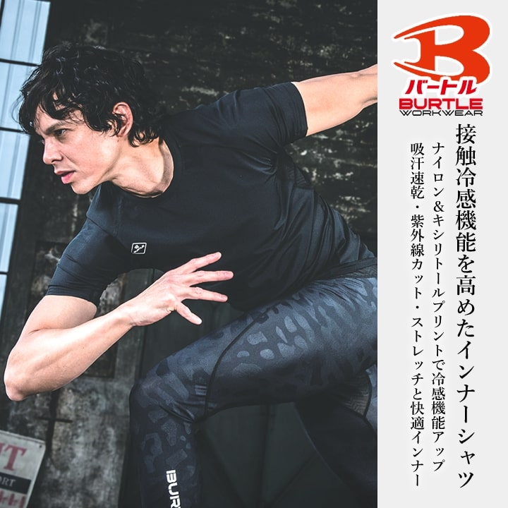 バートル 2025 インナーシャツ 4105 吸汗速乾 超接触冷感 キシリトール ひんやり UVカット 消臭 4WAY アイスフィッテッド アンダーシャツ 半袖 春夏 ストレッチ コンプレッション 男女兼用 スポーツ 作業服 作業着 BURTLE