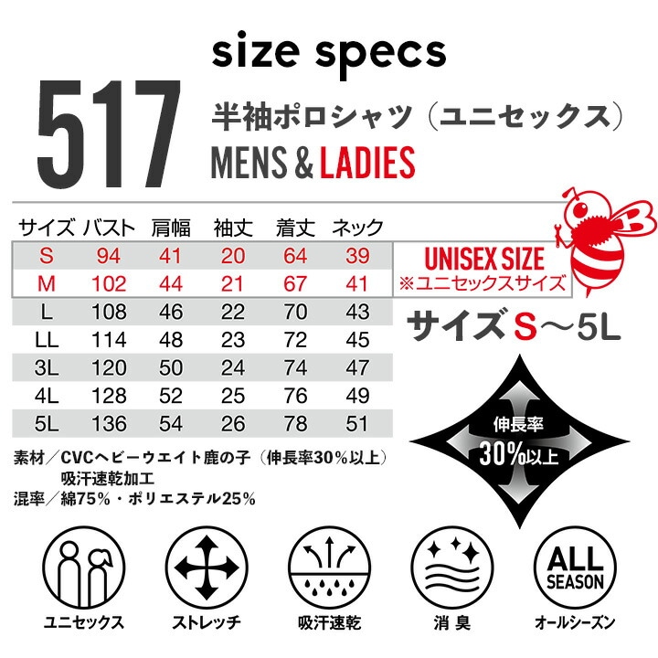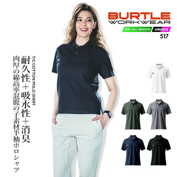 バートル ポロシャツ 半袖 517 吸汗速乾 ストレッチ 耐久性 吸水性 消臭 鹿の子 春夏 秋冬 移動着 作業服 作業着 スポーツ アウトドア 自転車 BURTLE