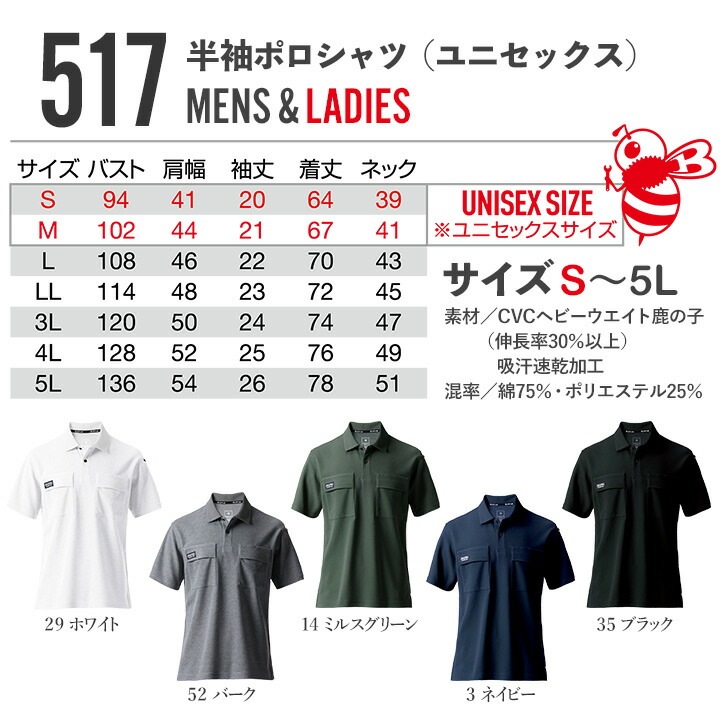 バートル BURTLE 半袖ポロシャツ 517