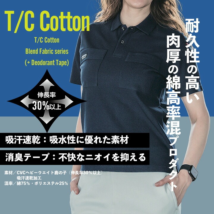 耐久性と吸水性に優れた綿高率混の肉厚鹿の子素材半袖ポロシャツ。 高い耐久性が特徴の素材を使用しハードなワークシーンも耐え抜く。 吸水速乾機能が汗ばむ時も快適な着心地を実現。 ストレッチ性のある生地が機動力とパフォーマンスを底上げ。 不快なニオイを抑える消臭テープ装着により気にせず作業に集中できる。 高機能性とスタイリッシュなデザインはワークシーンだけでなく難しいビジネスシーンや日常にも最適な半袖ポロシャツです。 【特徴】 ● 吸汗速乾 ● ストレッチ ● 消臭 ● ユニセックス |
