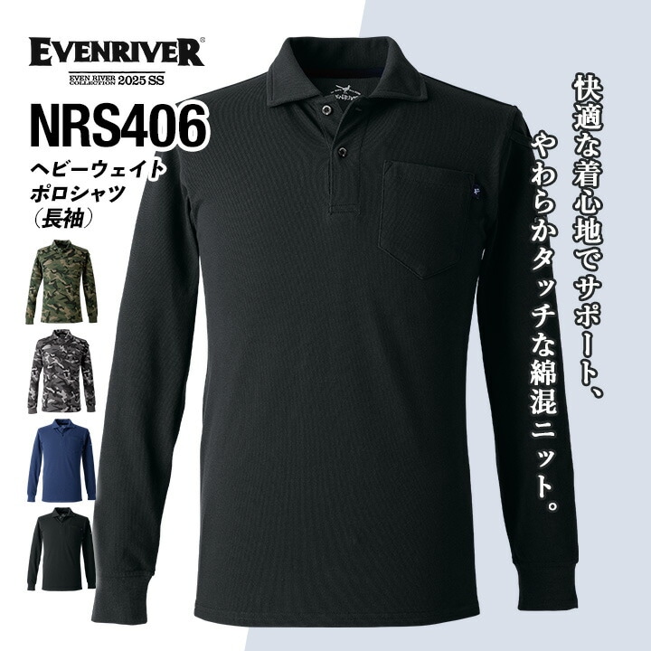 イーブンリバー ポロシャツ 長袖 ヘビーウェイト NRS406 吸汗 迷彩 春夏 秋冬 移動着 作業服 作業着 アウトドア スポーツ 自転車 EVENRIVER