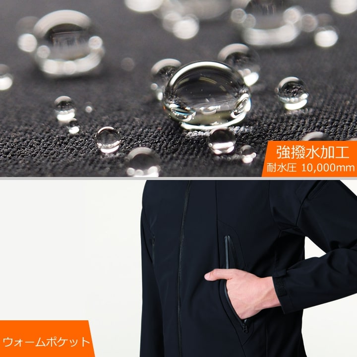 素材:3層構造裏メッシュボンディングストレッチ(伸長率18%) 防風ラミネート加工(耐水圧10,000mm)強撥水加工 |
