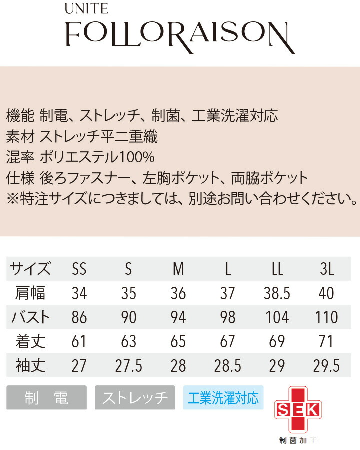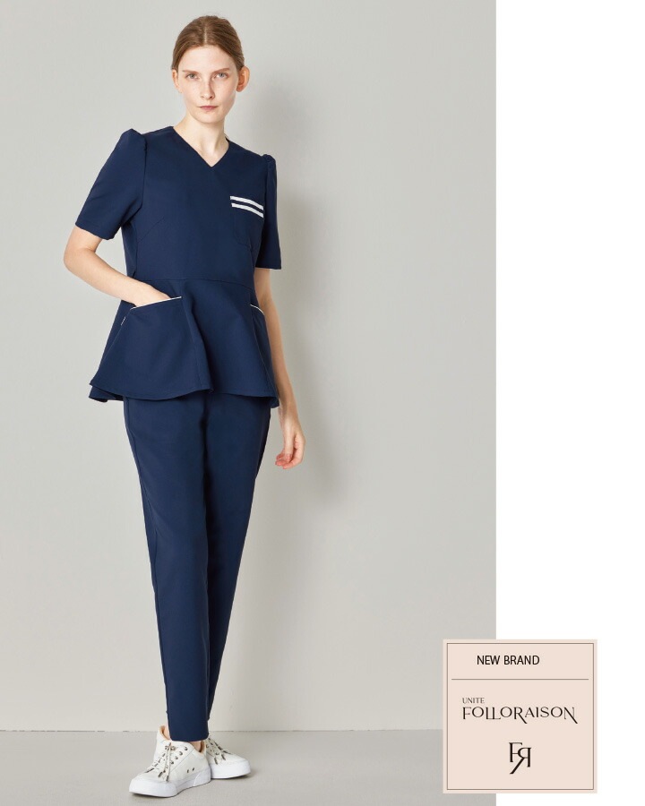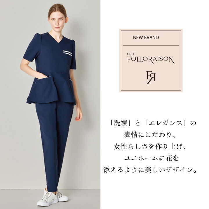 スクラブ 七分袖 医療 白衣 FR-0008 UNITE FOLLORAISON レディース エステ サロン 看護師 医師 透防止 制電 ストレッチ 制菌 イージーケア 工業選択対応 ユナイト