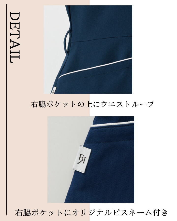 | 仕様 | 後ろファスナー、左胸ポケット、両脇ポケット 右脇ポケットの上にウエストループ付、右脇ポケットにオリジナルピスネーム付 |