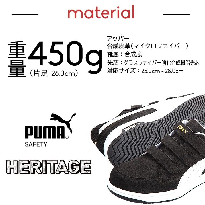 プーマ 安全靴 セーフティーシューズ ローカット ヘリテイジ エアツイスト2.0 HERITAGE Airwist2.0 JSAA A種 静電 衝撃吸収 作業用 作業靴 運送 倉庫 現場 土木 整備 マジックタイプ PUMA