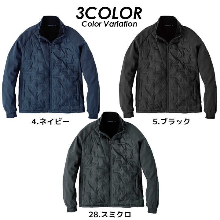 WINTER GIAR 最先端機能綿を搭載した防寒ジャケット。 抗菌・蓄熱・静電気抑制の3つの効果を搭載し快適に着用できる防寒オーバージャケット。 つぶれに強いボリューミーな中綿で長時間保温可能で暖かい仕様。 袖リブ仕様で冷たい風の侵入を防ぎさらに暖かい仕様。 ワークシーンはもちろんアウトドアやバイクの移動シーン等様々なシーンで大活躍の防寒オーバージャケットです。 【特徴】 ● 抗菌・蓄熱・静電気抑制機能 ● ボリューミーな中綿で長時間保温可能 |