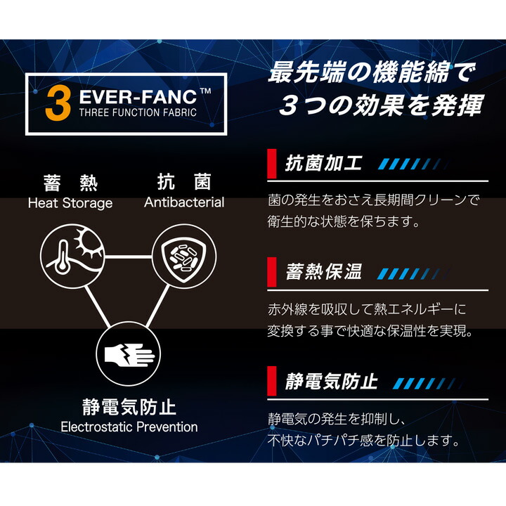 ・抗菌・蓄熱・静電気抑制機能を内蔵