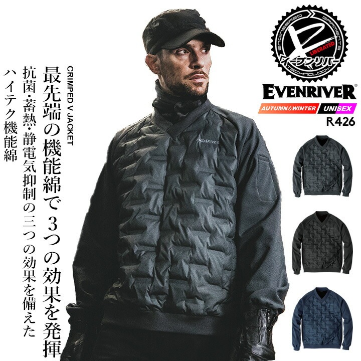 イーブンリバー 防寒ジャケット 作業服 EVENRIVER クリンプドオーバージャケット R407 防寒 アウター 中綿 蓄熱 保温 軽量 抗菌 バイク 自転車 作業着 ワークウェア ジャケット アウター