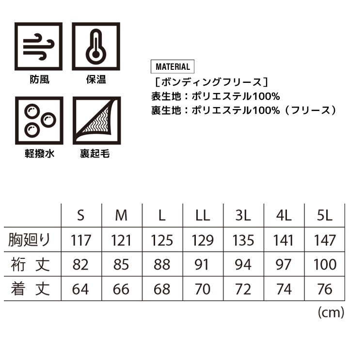 ■素材:ボンディングフリース 表:ポリエステル100% 裏:ポリエステル100%(フリース) |